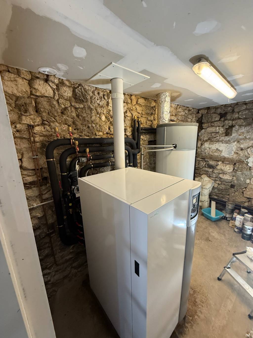 Découvrez comment Ets Vincent Patrice accompagne ses clients dans la transition énergétique, en alliant performance, économies et respect de l’environnement. Cette réalisation à Thenac (24240) illustre parfaitement les avantages du biofioul à condensation : un système moderne, durable et compatible avec les installations existantes.